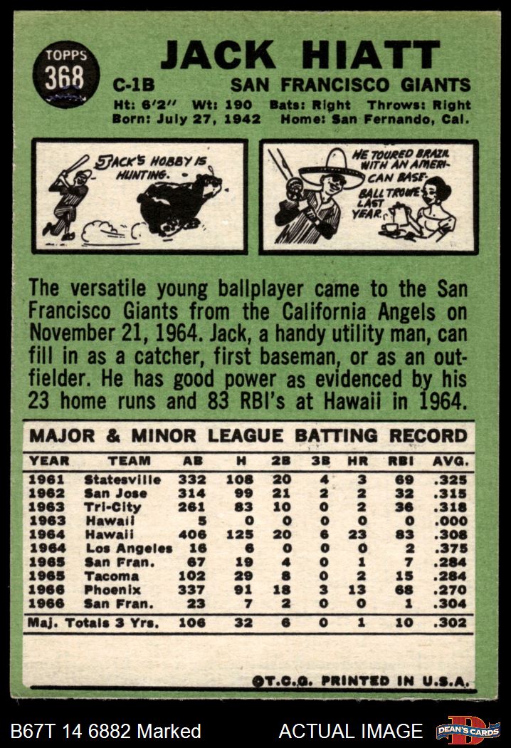 1967 Topps #368 Jack Hiatt Front Thumbnail