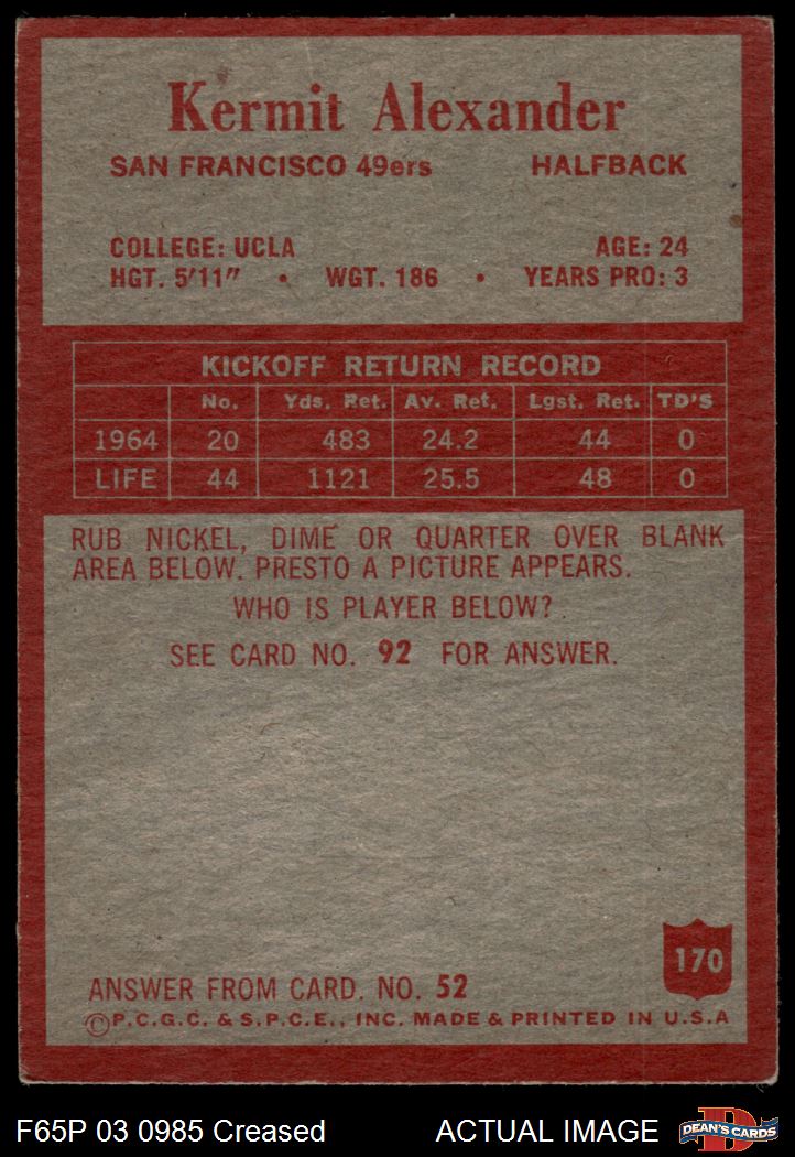 1965 Philadelphia #170 Kermit Alexander