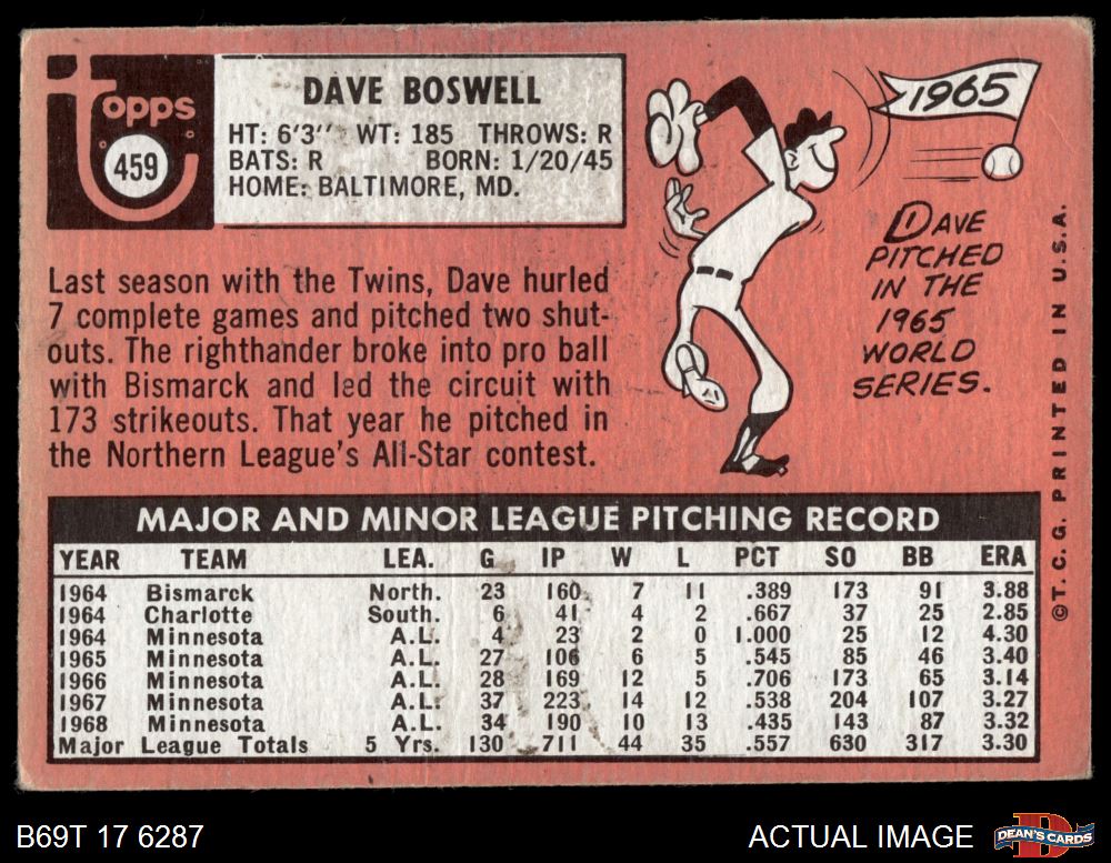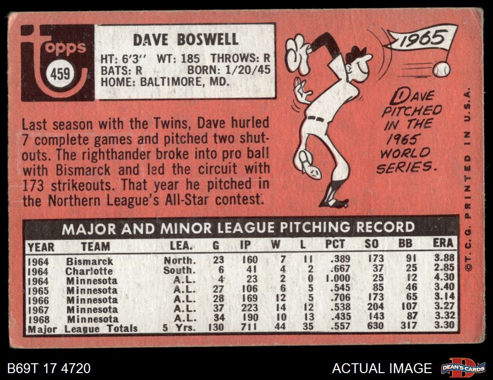 1969 Topps #459 Dave Boswell 1.5 - FAIR