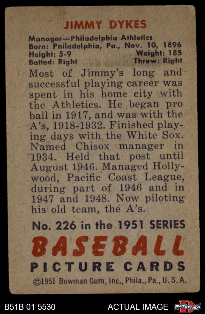 1951 Bowman #226 Jimmy Dykes 2 - GOOD