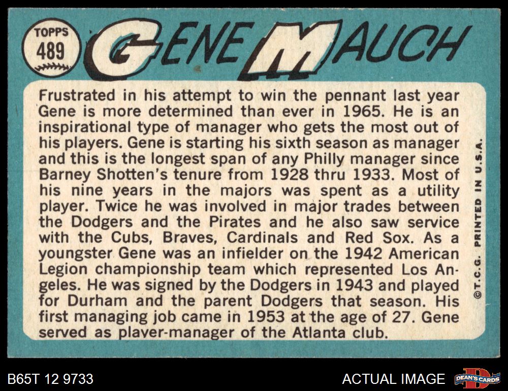 1965 Topps #489 Gene Mauch