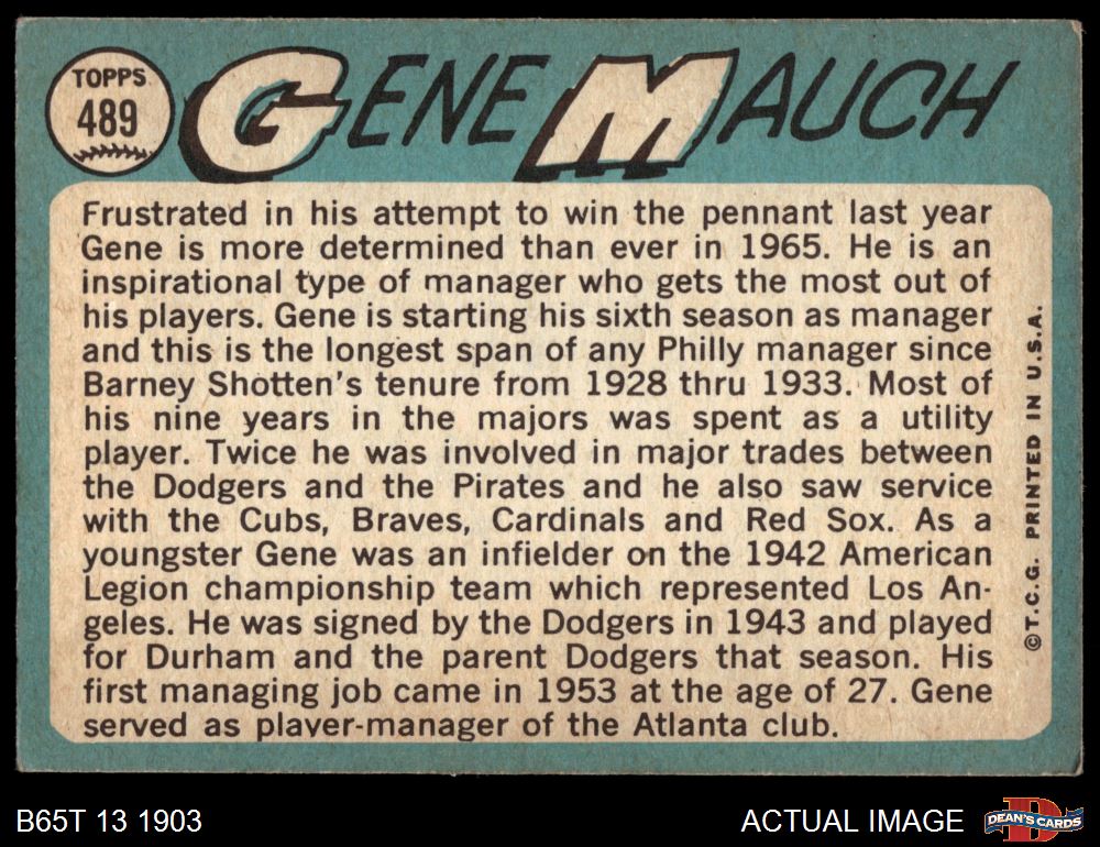 1965 Topps #489 Gene Mauch Front Thumbnail