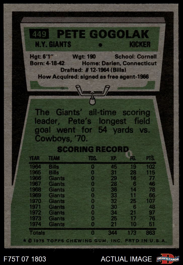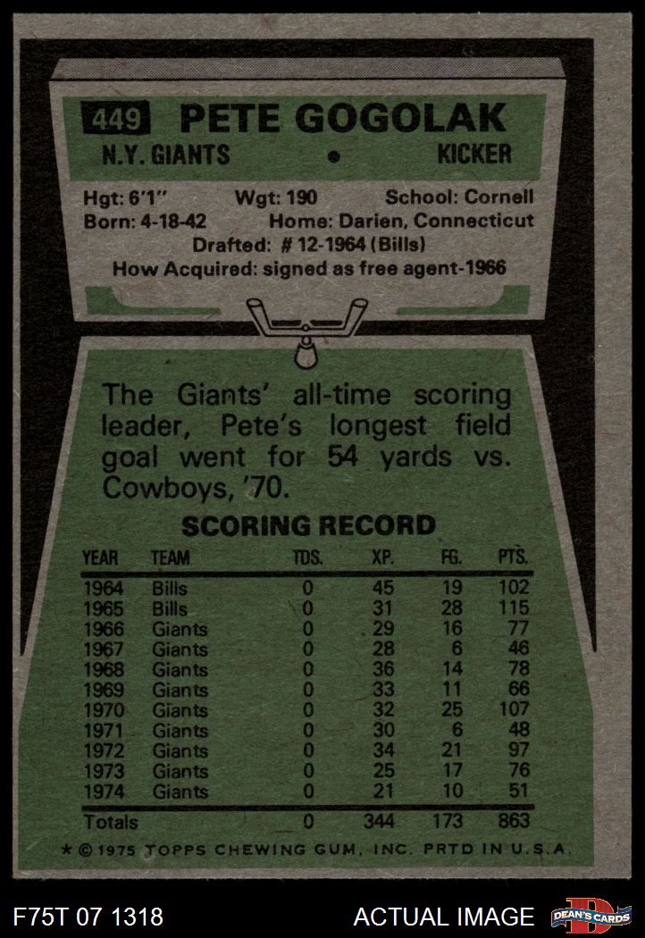 1975 Topps #449 Pete Gogolak 6 - EX/MT