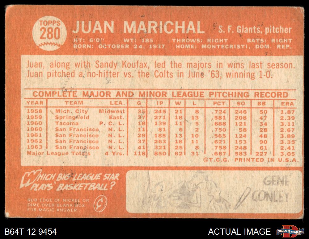 1964 Topps #280 Juan Marichal 1 - POOR