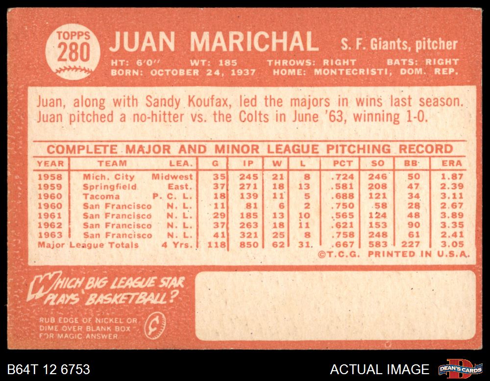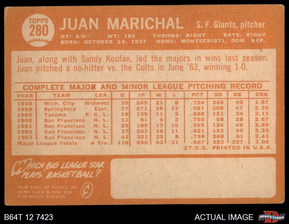 1964 Topps #280 Juan Marichal