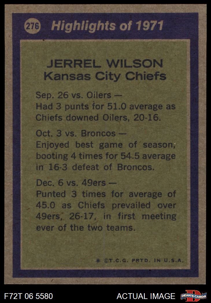 1972 Topps #276 - Jerrel Wilson All-Pro 8 - NM/MT