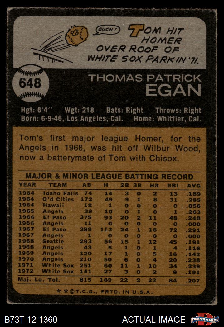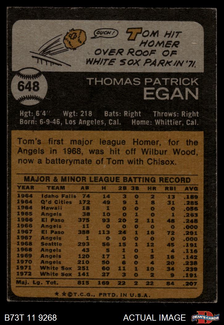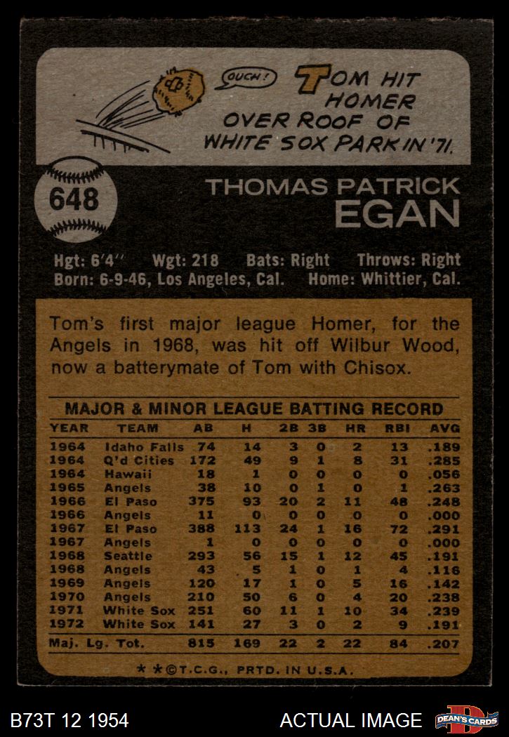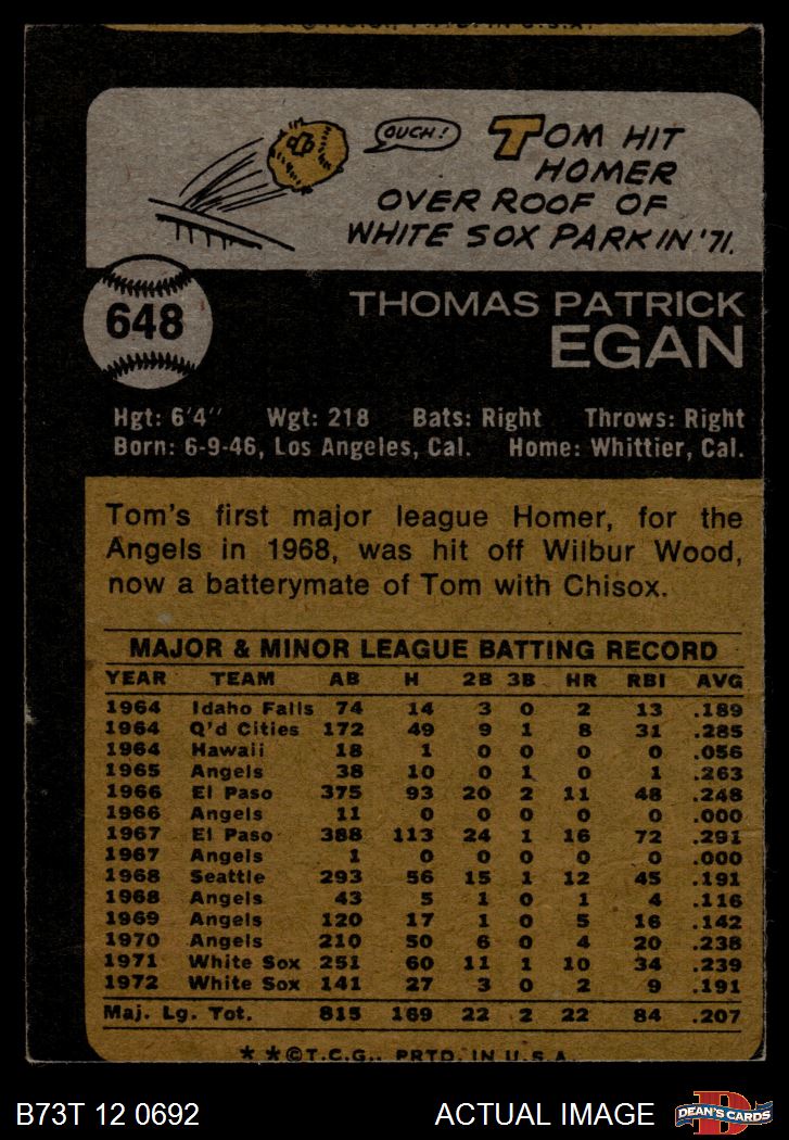 1973 Topps #648 Tom Egan