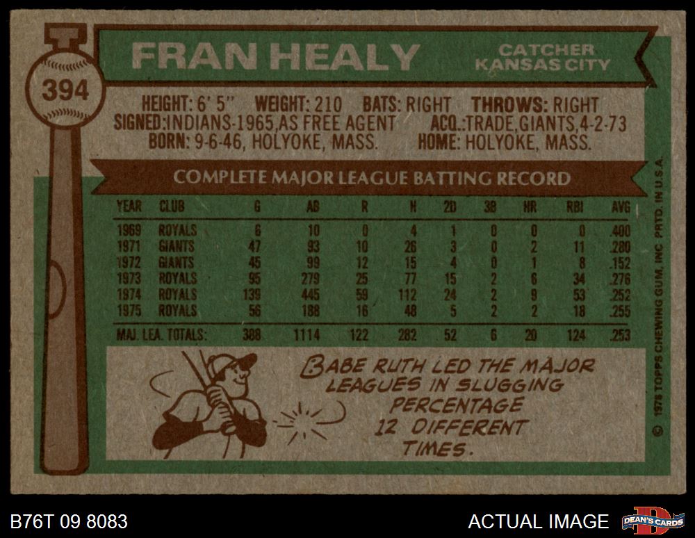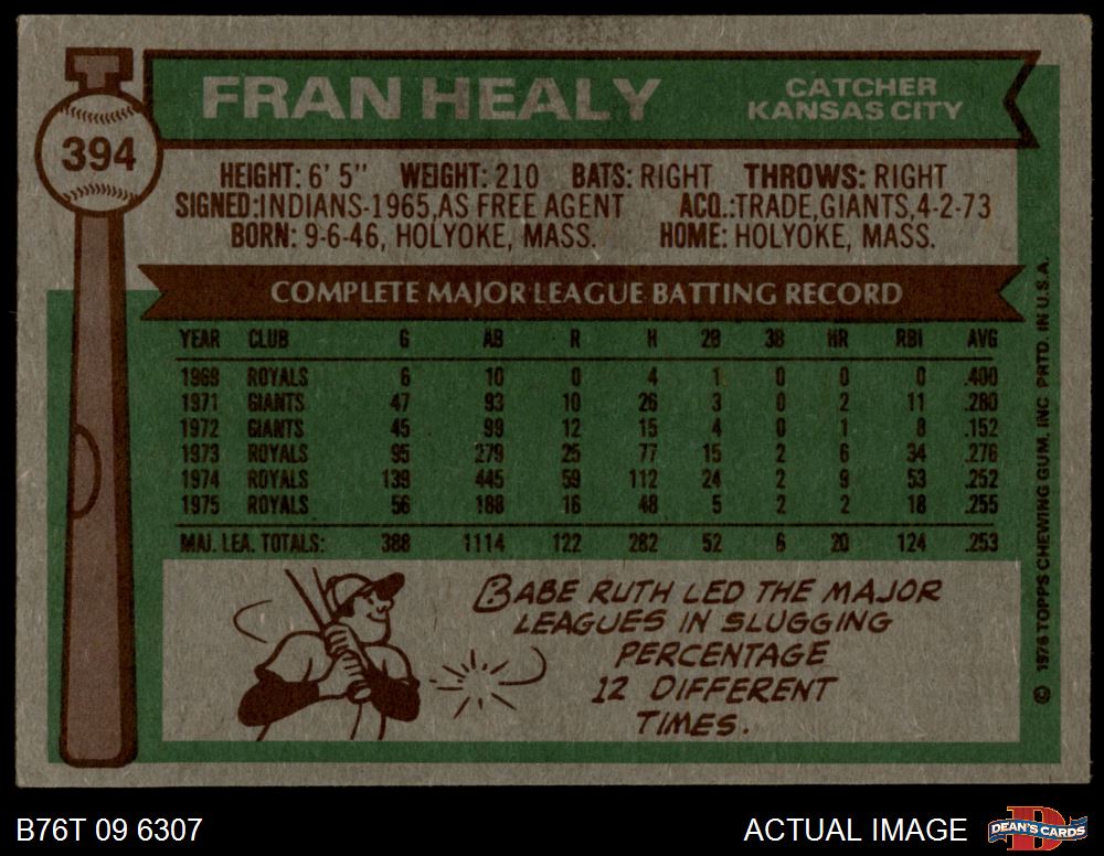 1976 Topps #394 Fran Healy 3 - VG