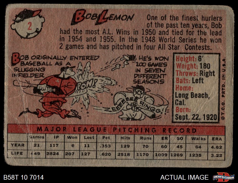 1958 Topps #2 WT Bob Lemon AUTHENTIC