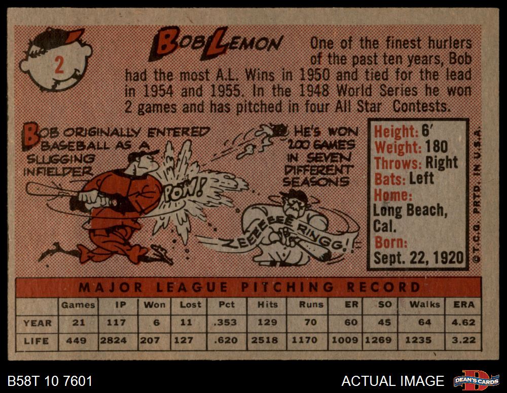 1958 Topps #2 WT Bob Lemon 3 - VG