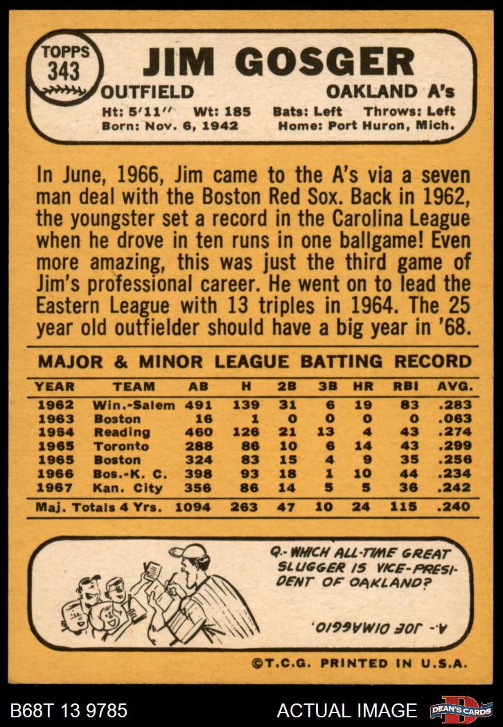 1968 Topps #343 Jim Gosger