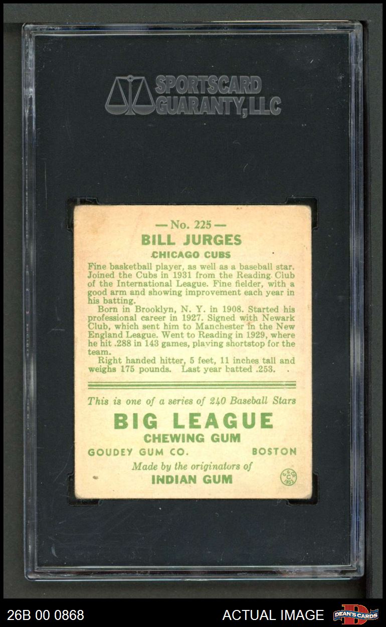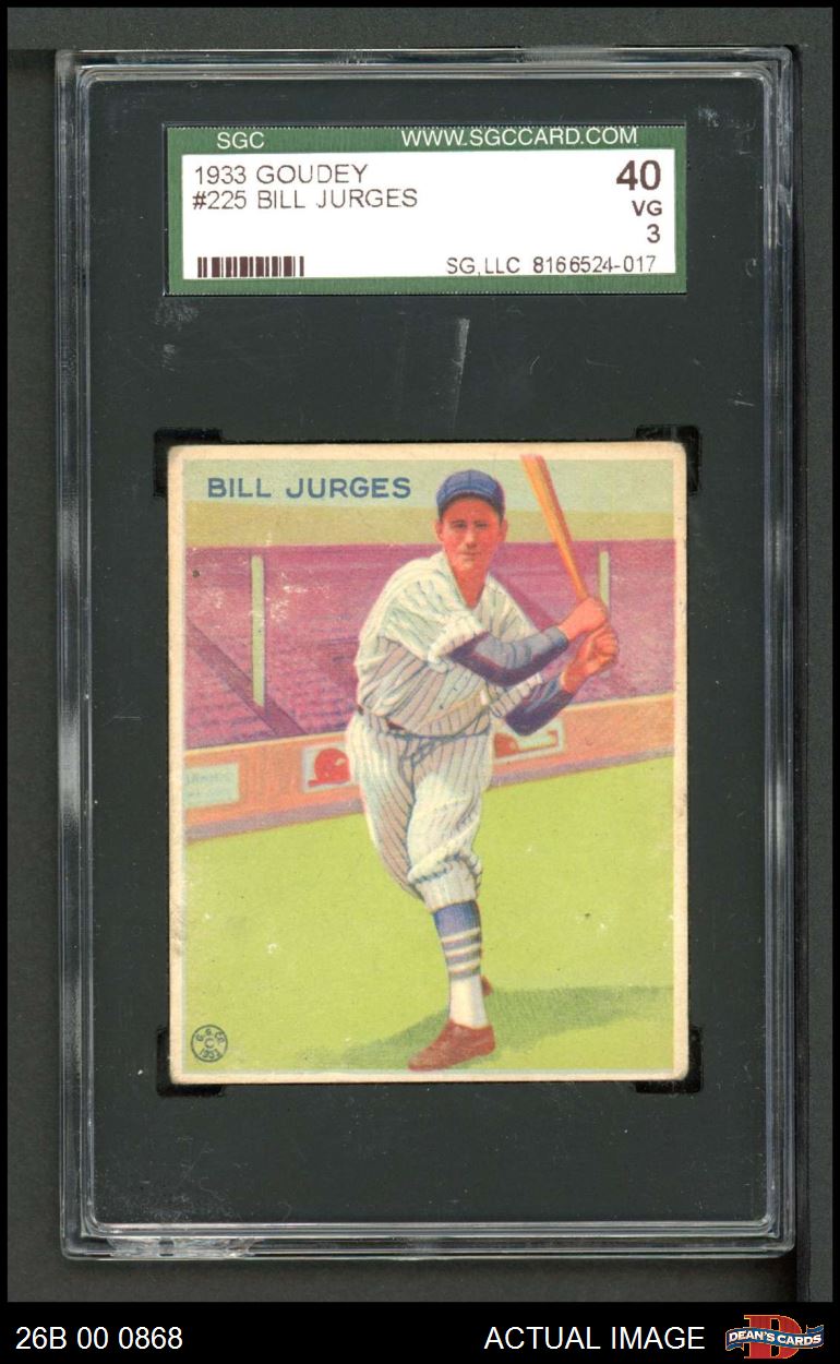 1933 Goudey #225 Billy Jurges SGC 3 - VG