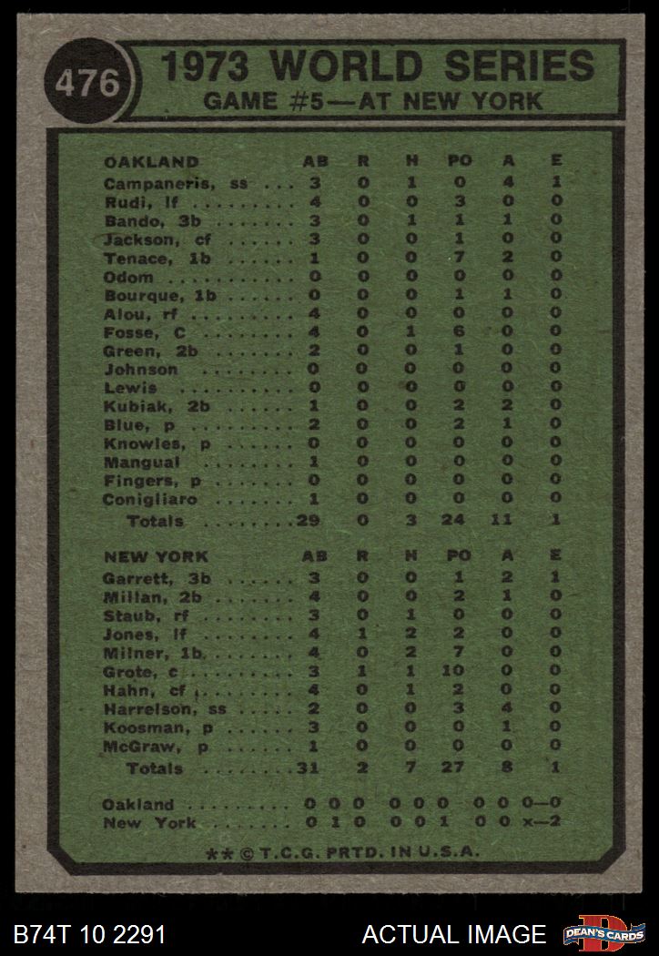 1974 Topps #476 - Cleon Jones / Ray Fosse / Jerry Grote 1973 World Series - Game #5 8 - NM/MT