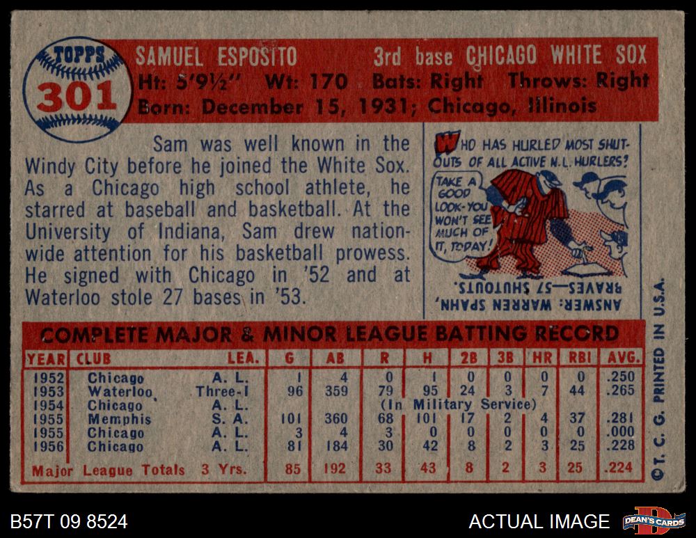 1957 Topps #301 Sammy Esposito