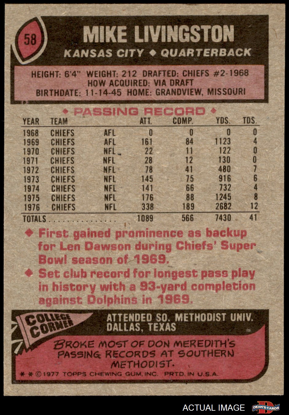 1977 Topps #58 Mike Livingston 4 - VG/EX