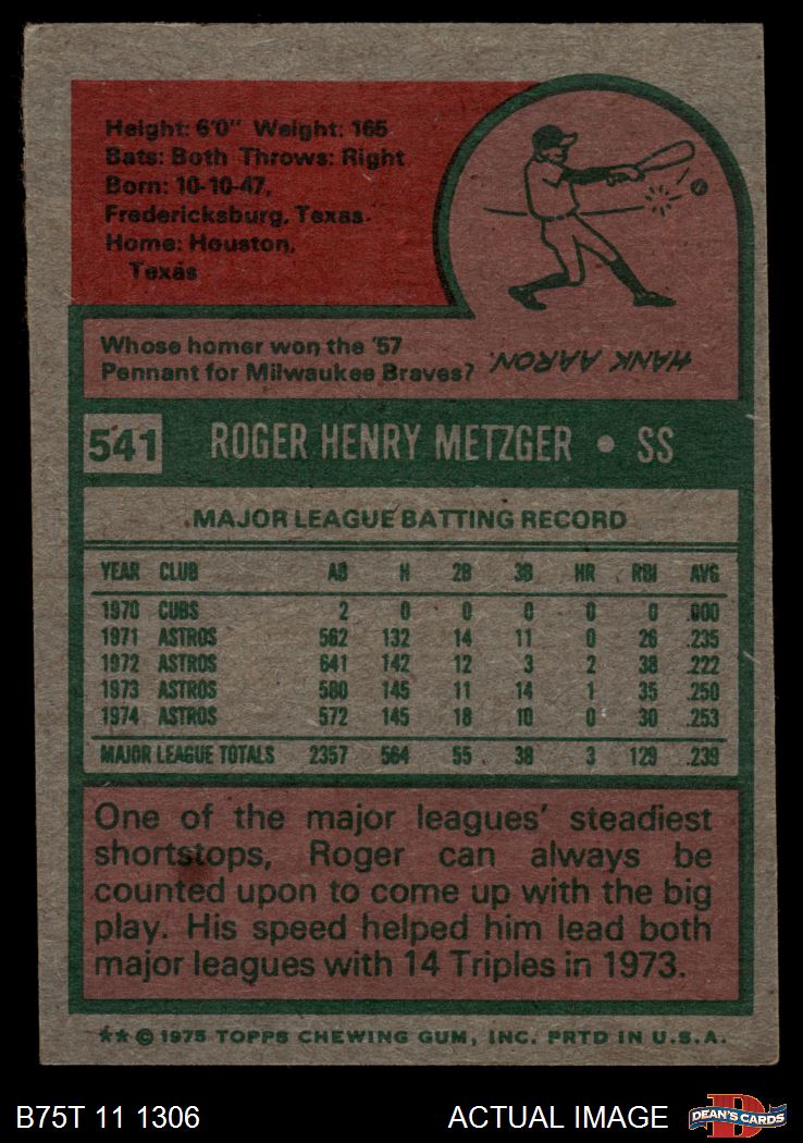 1975 Topps #541 Roger Metzger 4 - VG/EX