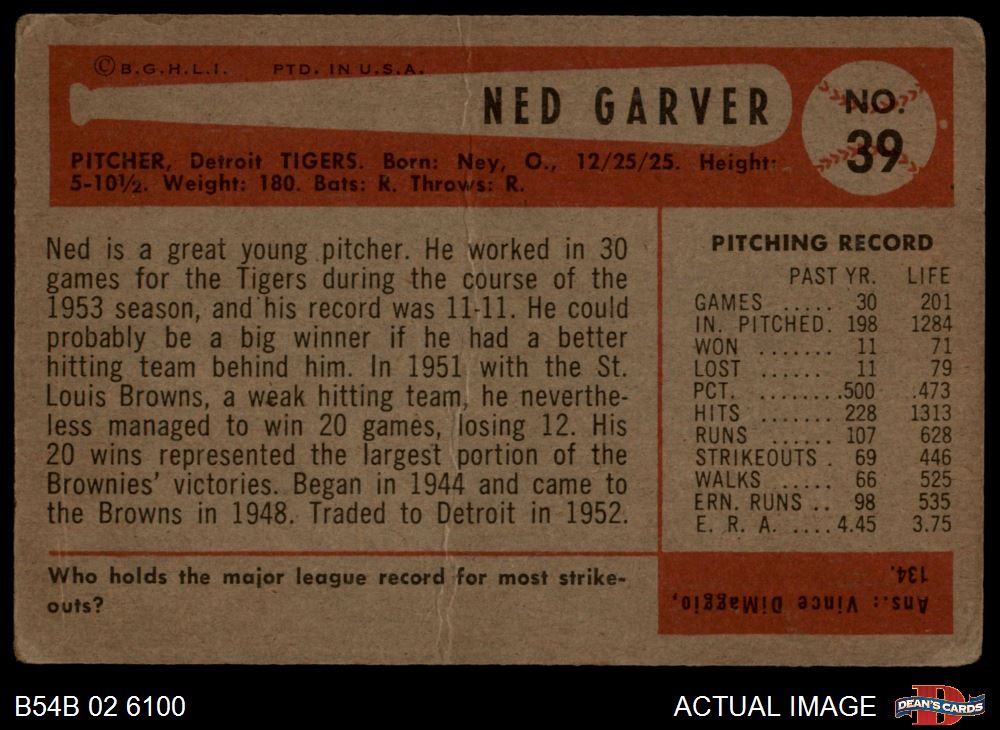 1954 Bowman #39 Ned Garver Front Thumbnail