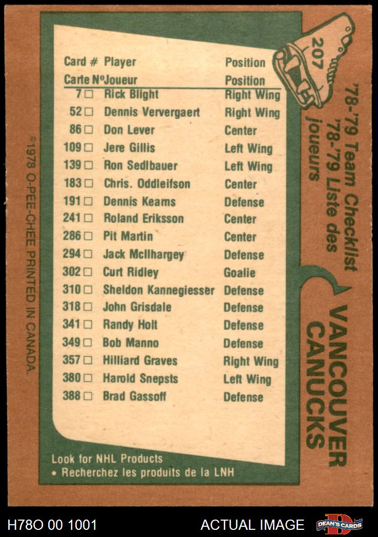 1978 O-Pee-Chee #207 Canucks Team 4 - VG/EX