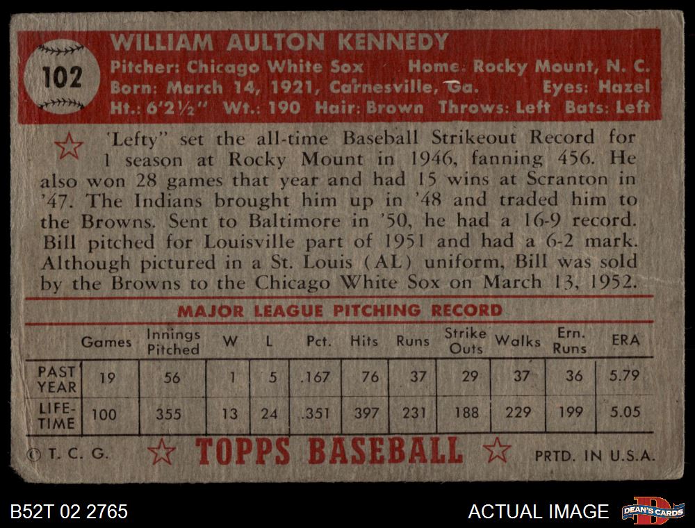 1952 Topps #102 Bill Kennedy