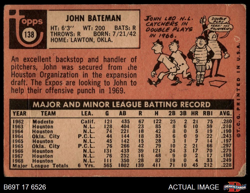 1969 Topps #138 John Bateman