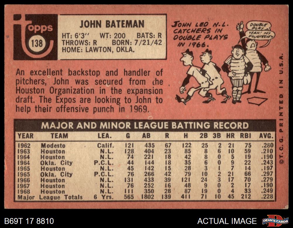 1969 Topps #138 John Bateman 2 - GOOD
