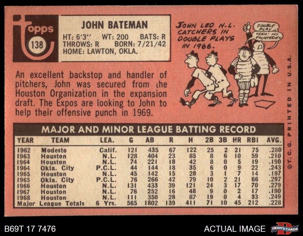 1969 Topps #138 John Bateman 6 - EX/MT