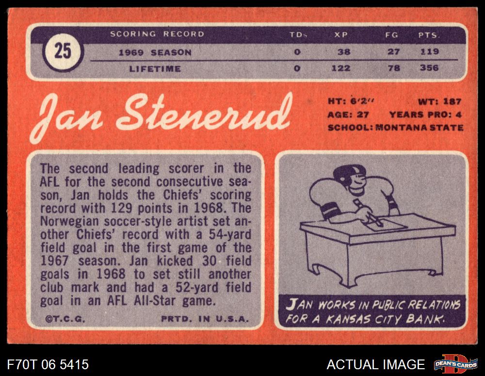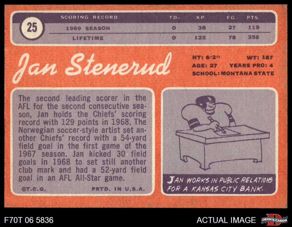 1970 Topps #25 Jan Stenerud 4 - VG/EX