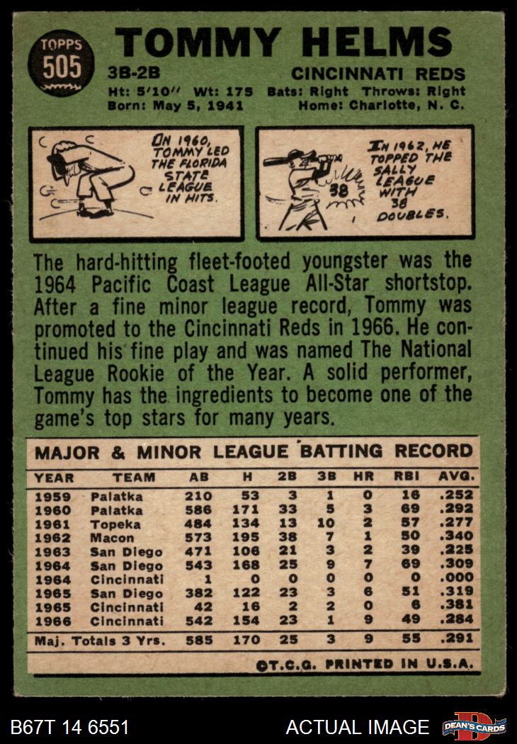 1967 Topps #505 Tommy Helms