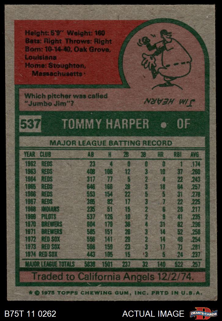 1975 Topps #537 Tommy Harper 4 - VG/EX