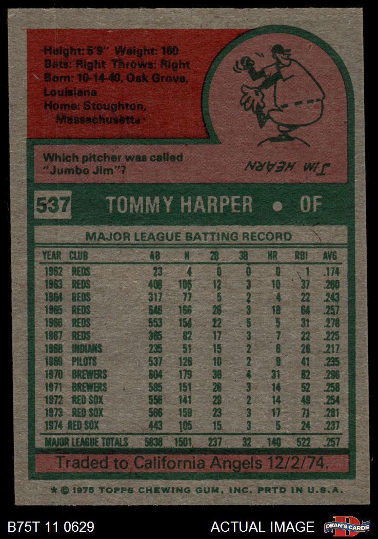 1975 Topps #537 Tommy Harper 6 - EX/MT