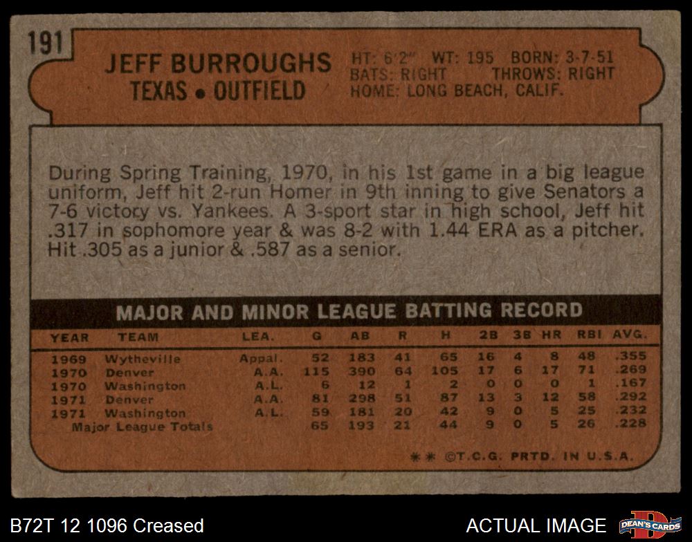 1972 Topps #191 Jeff Burroughs 3 - VG