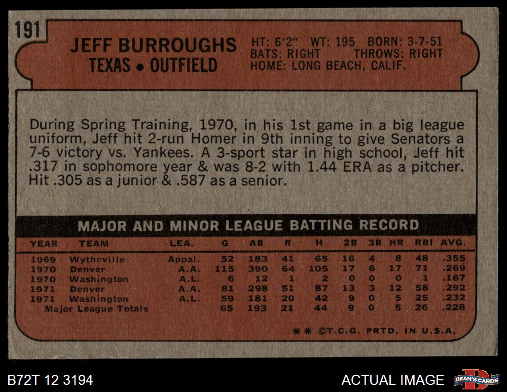 1972 Topps #191 Jeff Burroughs 4 - VG/EX