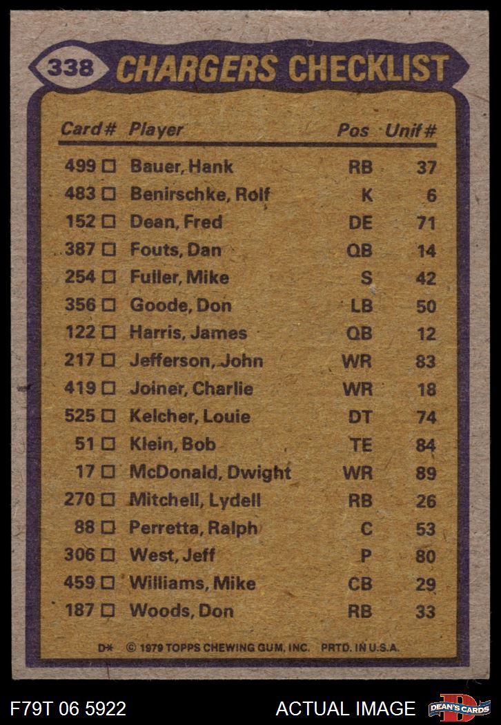 1979 Topps Football Cards (10,078 available)1979 Topps Chargers (358 available)