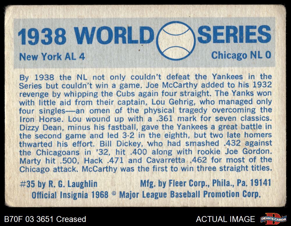 1970 Fleer World Series #35 - Lou Gehrig 1938 Yankees vs. Cubs 2 - GOOD