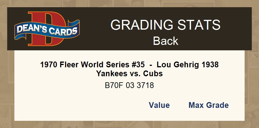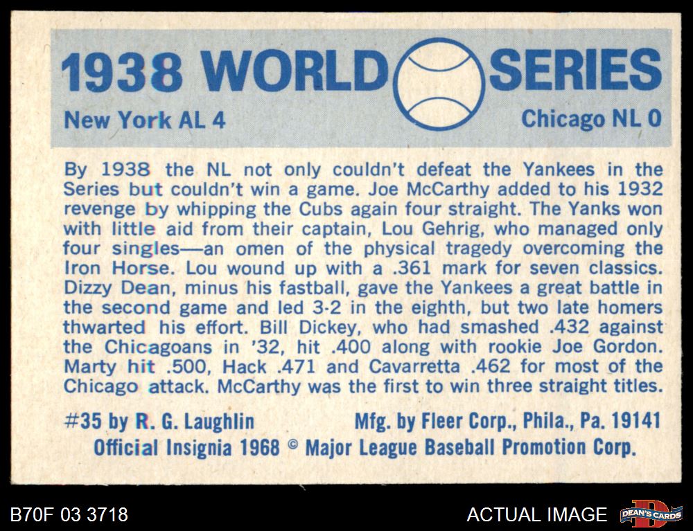 1970 Fleer World Series #35 - Lou Gehrig 1938 Yankees vs. Cubs 3 - VG