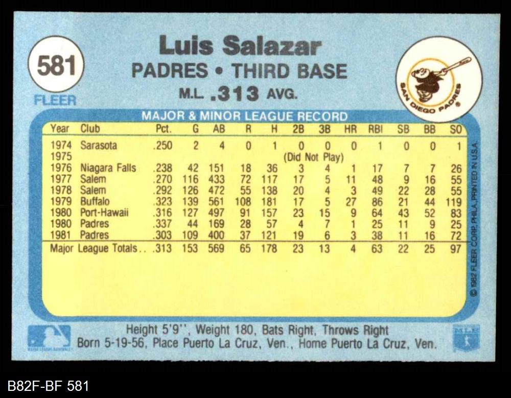 1982 Fleer #581 Luis Salazar 8 - NM/MT