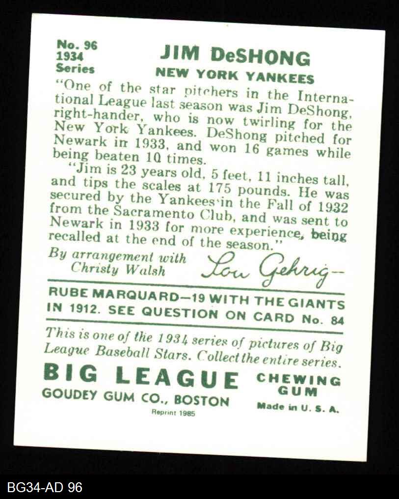 1934 Goudey Reprint #96 James DeShong
