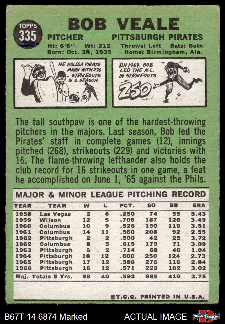 1967 Topps #335 Bob Veale 1.5 - FAIR