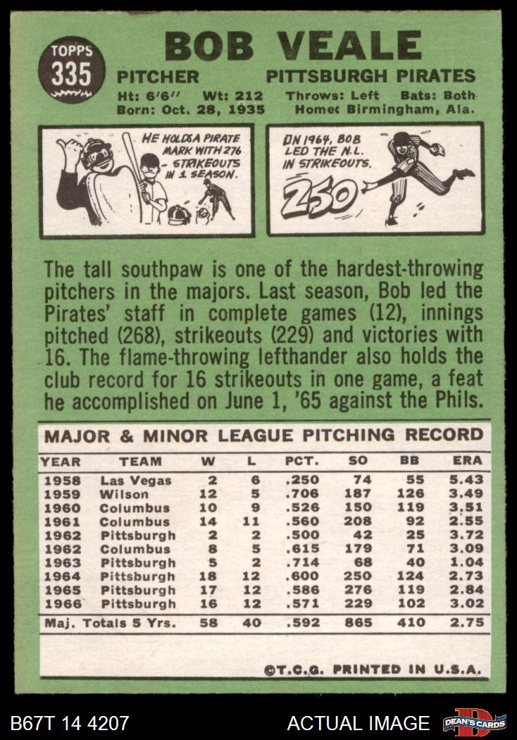 1967 Topps #335 Bob Veale 3 - VG
