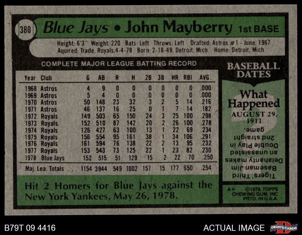 1979 Topps #380 John Mayberry