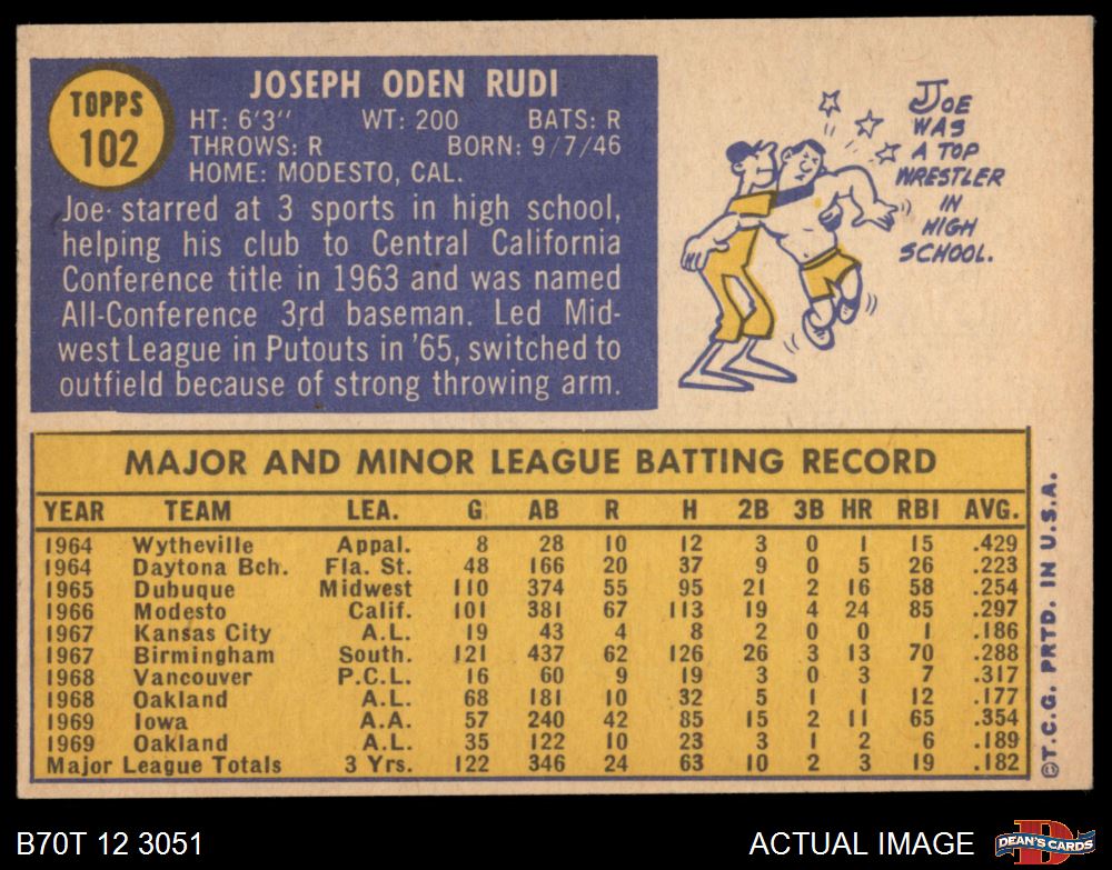 1970 Topps #102 Joe Rudi 5 - EX