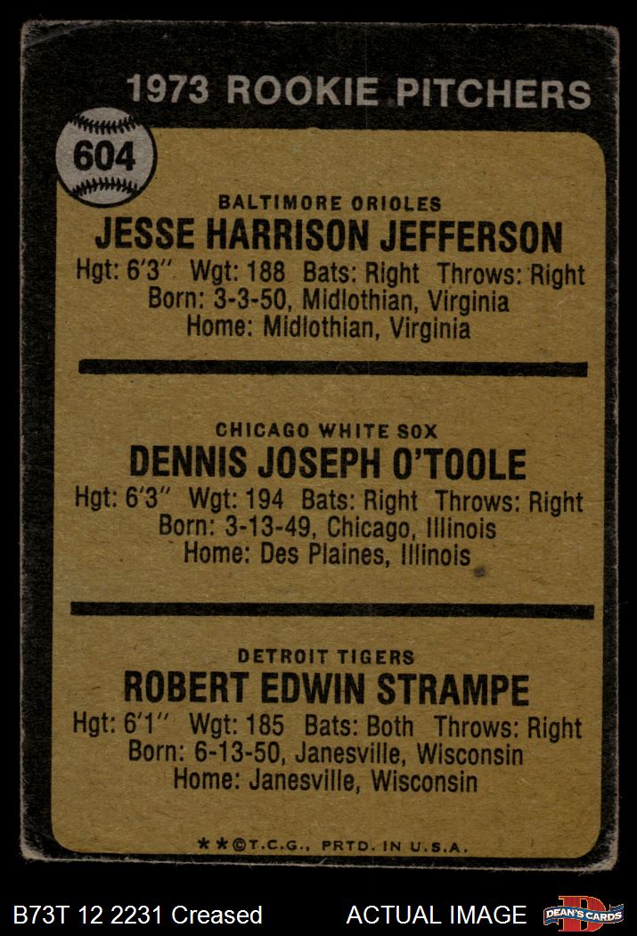 1973 Topps #604 - Jesse Jefferson / Dennis O'Toole / Bob Strampe Rookie Pitchers 1.5 - FAIR