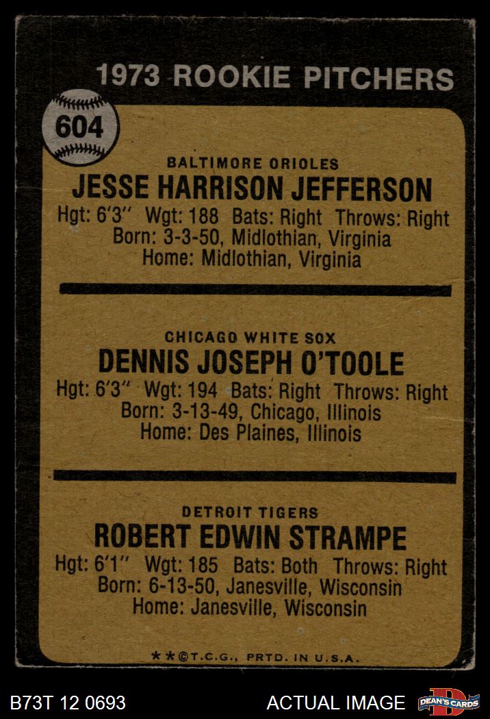 1973 Topps #604 - Jesse Jefferson / Dennis O'Toole / Bob Strampe Rookie Pitchers 2 - GOOD