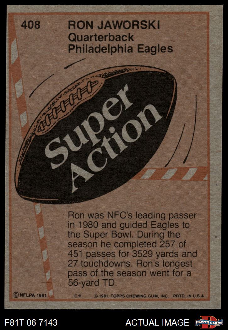 1981 Topps #408 - Ron Jaworski Super Action 6 - EX/MT