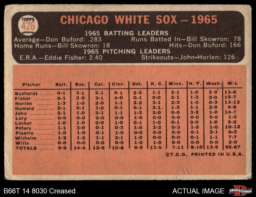 1966 Topps Baseball Cards (15,471 available)1966 Topps White Sox (912 available)