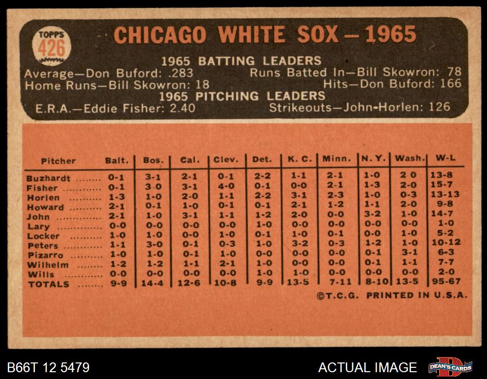 1966 Topps #426 White Sox Team 4.5 - VG/EX+