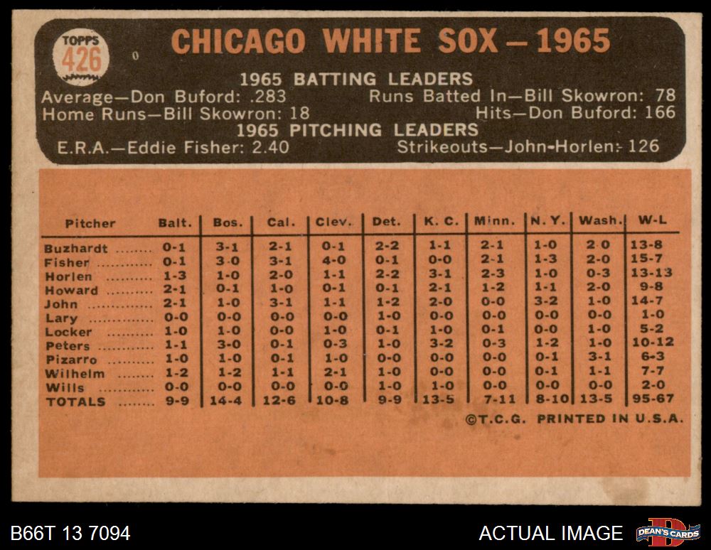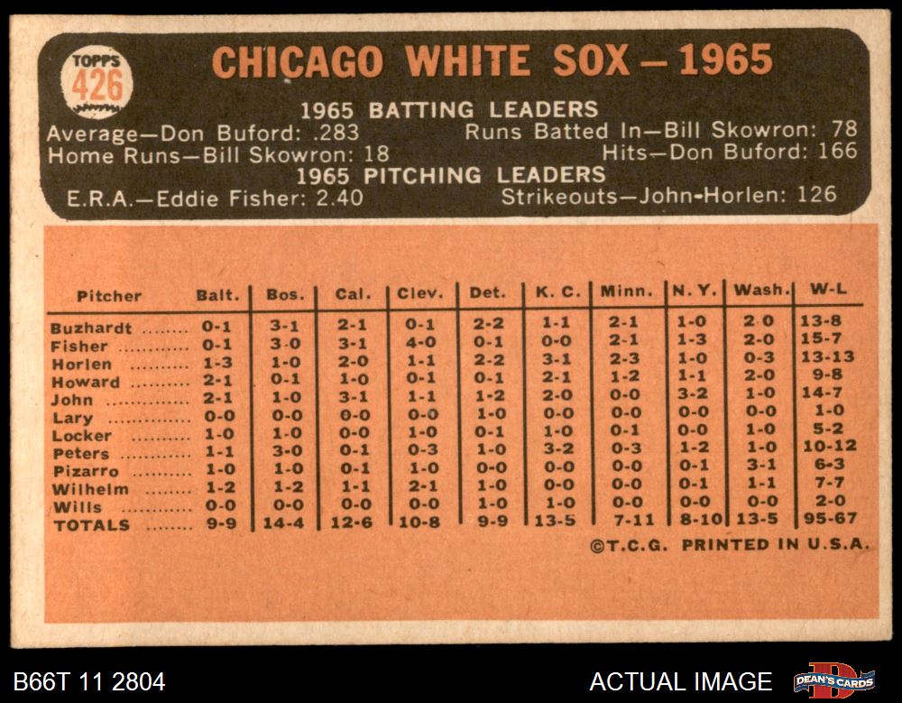 1966 Topps #426 White Sox Team 5 - EX