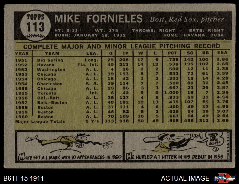 1961 Topps Baseball Cards (10,543 available)1961 Topps Red Sox (721 available)