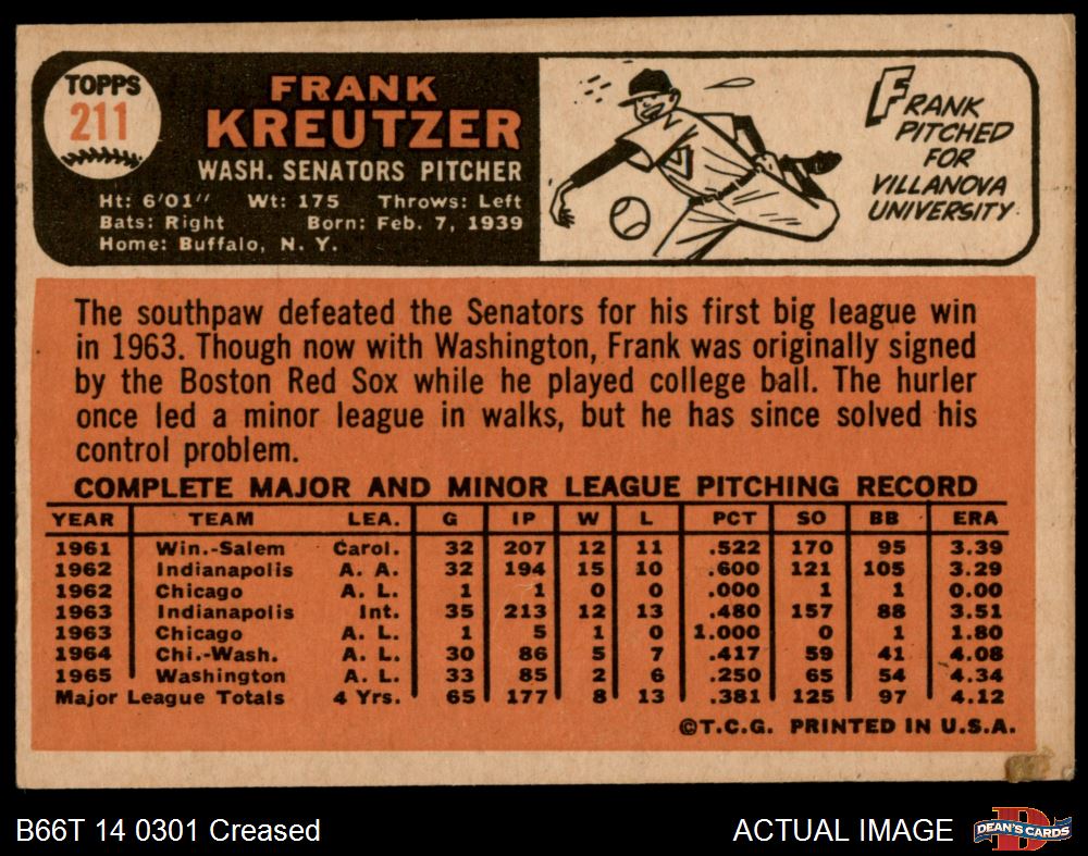 1966 Topps #211 Frank Kreutzer