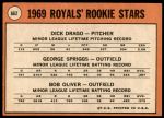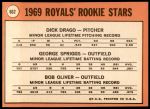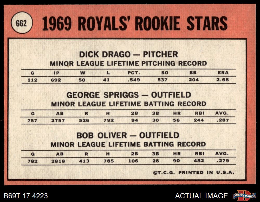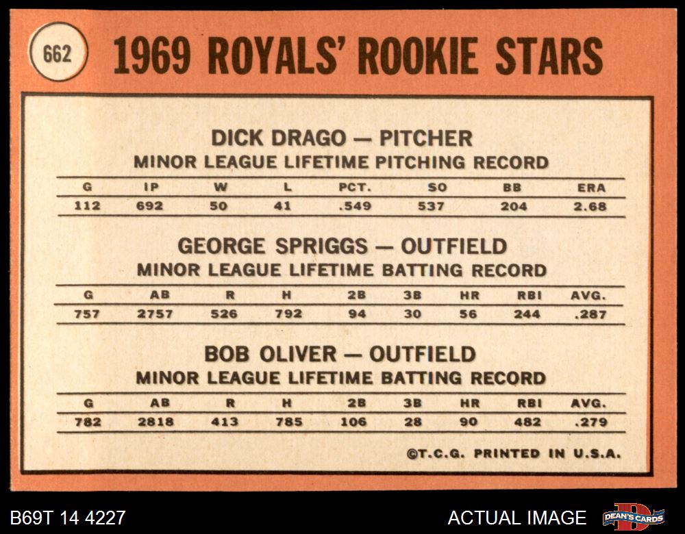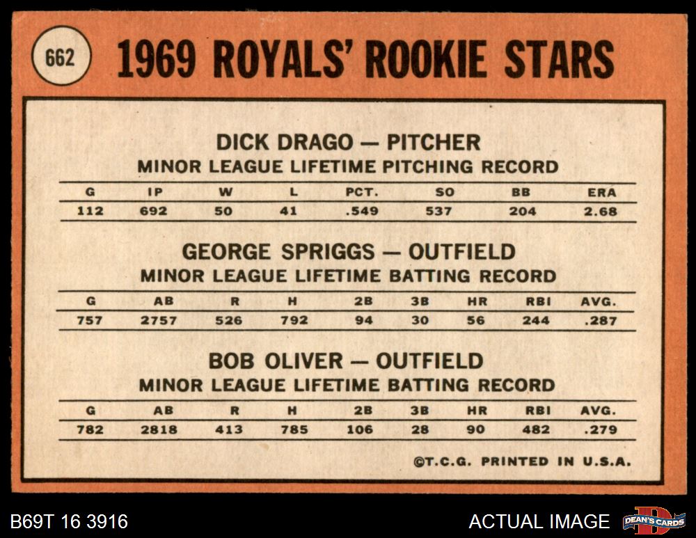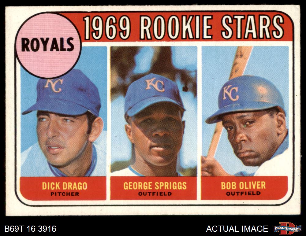 1969 Topps #662 - Dick Drago / Bob Oliver / Geroge Spriggs Royals Rookies 6 - EX/MT